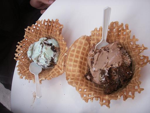 ☆知らない人の為に☆コールドストーンクリーマリーとは、アメリカで急成長を続けるアイスクリームショップで、その名のとおり「冷たい石」の上で新鮮なフルーツ、濃厚なチョコレート、触感の良いクッキーなどをアイスクリームに混ぜてくれる新感覚なアイスクリームショップです。 急に歌いだしたりしてビックリするハズっ!!でも、とりあえず美味しいので是非食べてみて下さい♪ オマケ